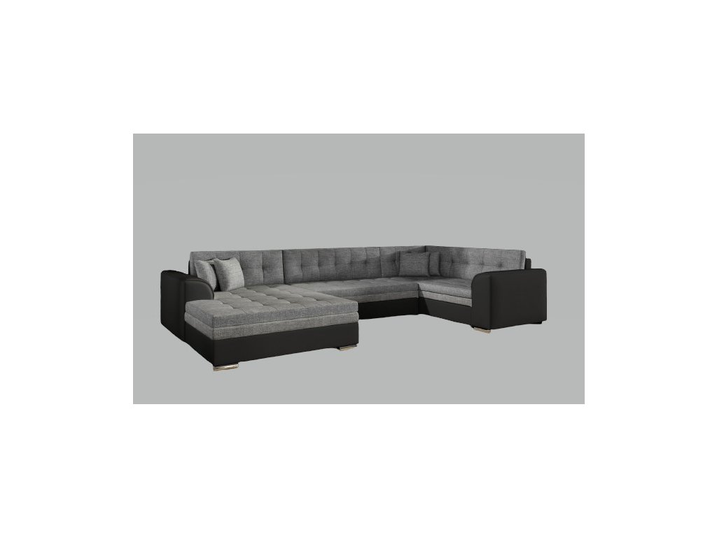 Akční cena je za zboží skladem. DAMARO 09 je rozkládací účková pružinová sedačka, vhodná pro každou moderní domácnost. Svými rozměry je vhodná do větších prostor, je moderním a designovým prvkem. Materiál sedačky je v oblíbené kombinaci ekokůže Soft 11 černé barvy s látkou Sawana 21 v šedé barvě. V sedací části je kvalitní vlnovcová pružina. Sedačka nabízí funkci rozložení se spací plochou až 275x126 cm (další rozměry na obrázku) Hustota pěny sedací plochy je T3040 a opěrky T2542. Dodáváme v demontovaném stavu.Doplňkové parametry
