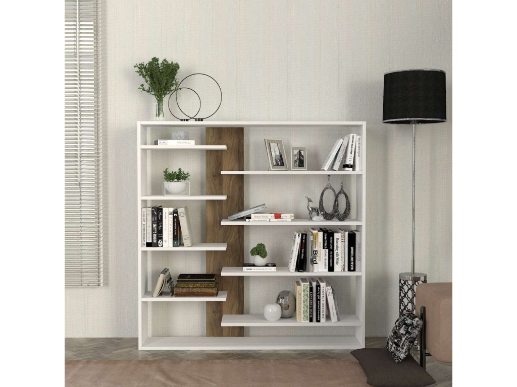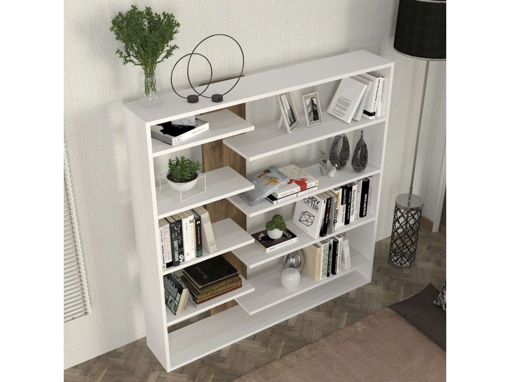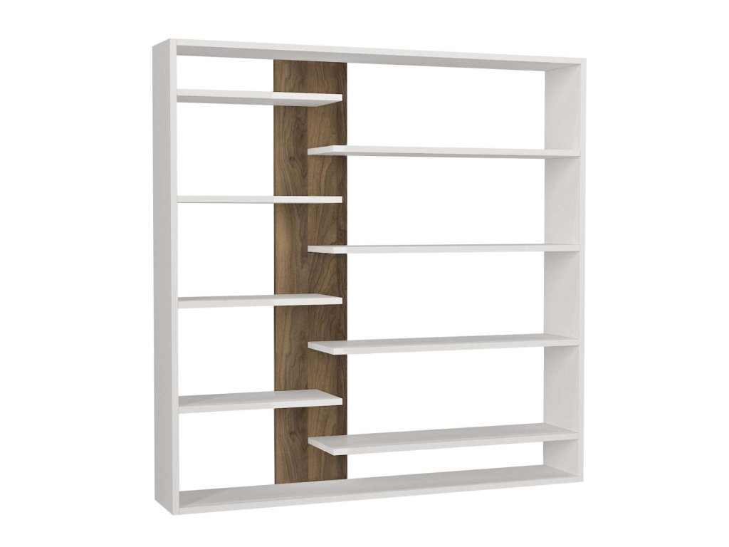 Regál DANDY vyniká svým moderním a praktickým designem, který se skvěle hodí do jakéhokoliv interiéru. Čtyři pevné police poskytují dostatek úložného prostoru pro knihy, dekorace či kancelářské potřeby. Kombinace bílé a ořechové barvy dodává regálu elegantní vzhled. Robustní LTD materiál o tloušťce 18 mm zajišťuje dlouhou životnost a stabilitu tohoto regálu.