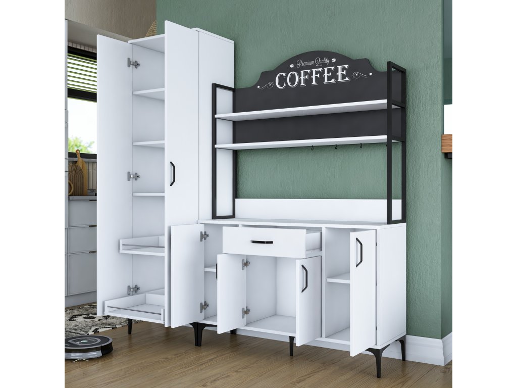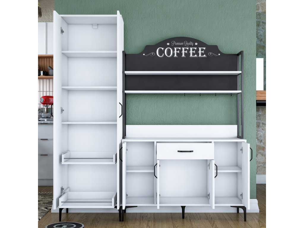 Skříň DANGER je navržena pro maximální využití úložného prostoru. Obsahuje šest plných dvířek, jednu zásuvku a praktický regálek, které poskytují dostatek místa pro uskladnění kuchyňských potřeb, nádobí či dalších předmětů. Její víceúčelový design zajišťuje snadné uspořádání a přístup ke všemu, co potřebujete.