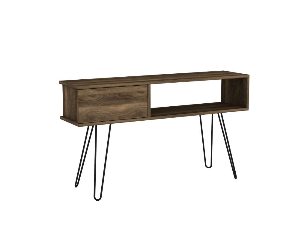 TV stolek DARA je skvělou volbou pro ty, kteří hledají moderní a funkční nábytek s elegantním vzhledem. Jeho ořechová barva a minimalistický design přinášejí do vašeho domova teplo a moderní styl.