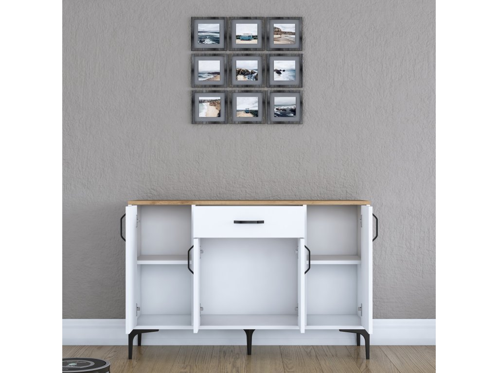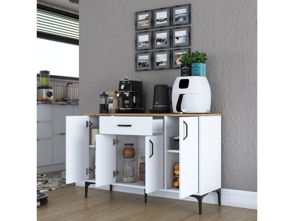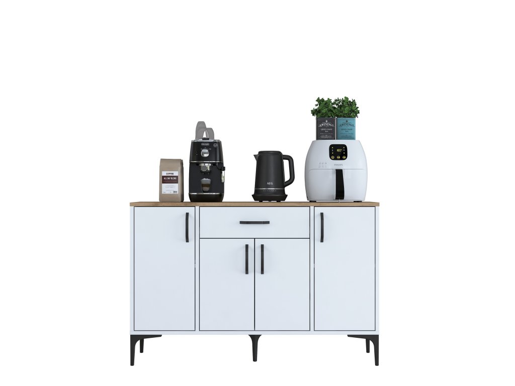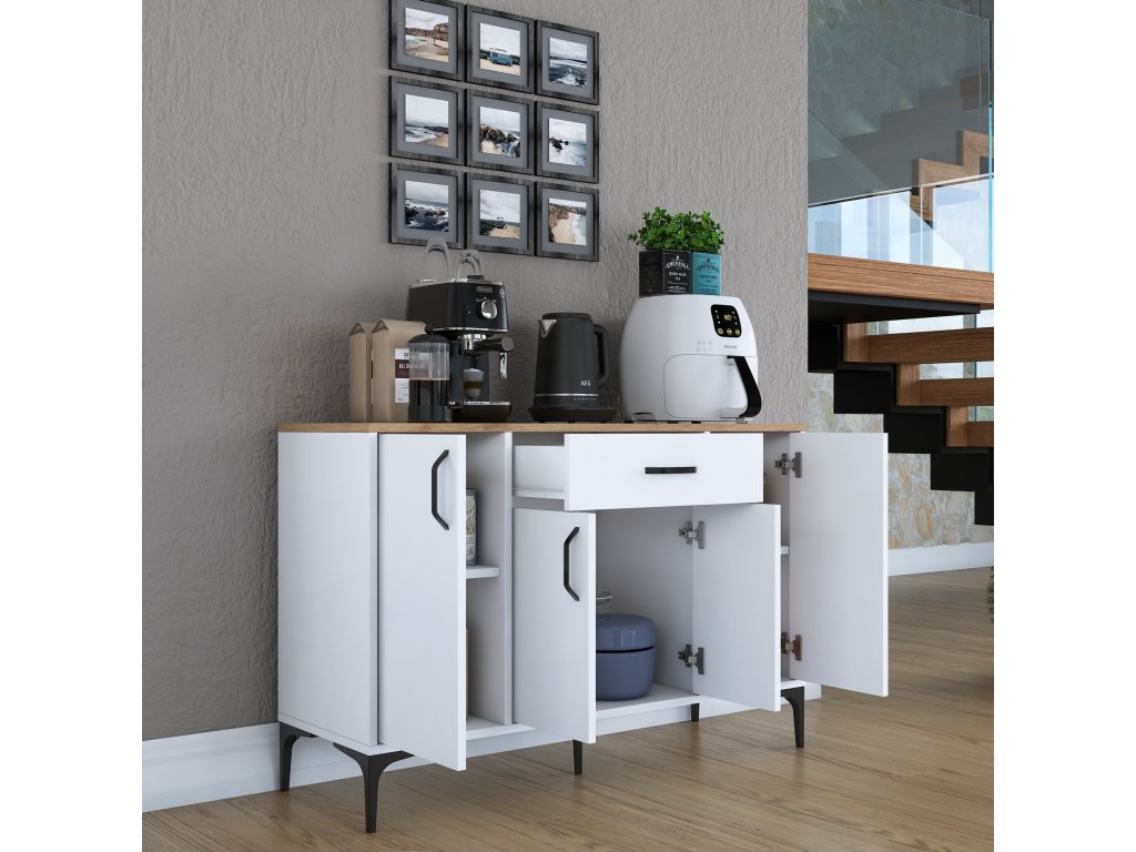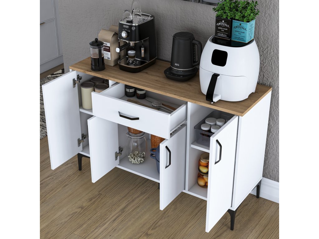 Skříňka DART poskytuje dostatek úložného prostoru díky čtyřem plným dvířkům a jedné praktické zásuvce. Je ideální pro uspořádání kuchyňských potřeb, nádobí nebo potravin. Použití kvalitních materiálů, jako je melamin a VT laminát, zajišťuje její dlouhou životnost a snadnou údržbu.