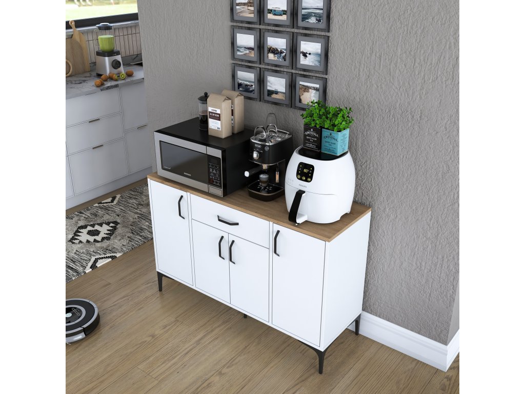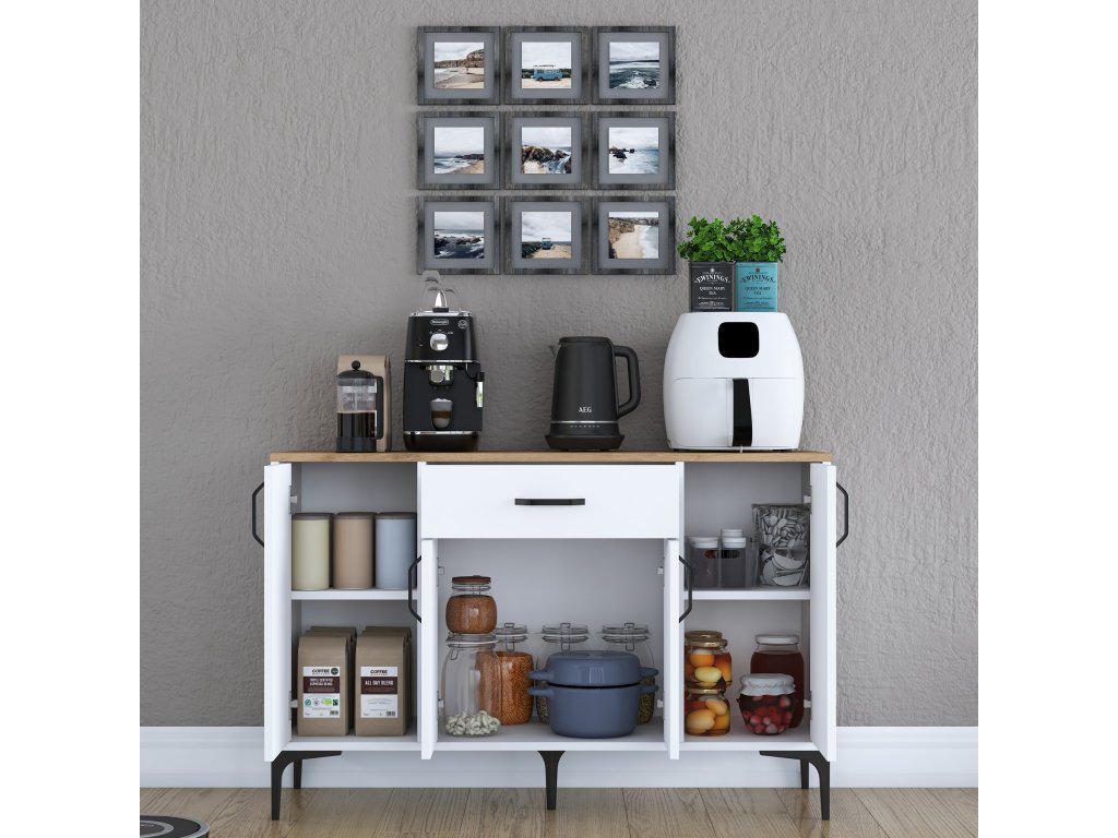 Kuchyňská skříňka DART kombinuje funkčnost a stylový design. Díky bílé barvě doplněné o ořechový dekor se skvěle hodí do každé kuchyně. Skandinávský styl a víceúčelový vzhled z ní činí praktický i estetický doplněk vašeho domova.