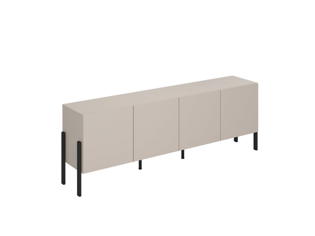 Televizní stolek je čtyřdveřový. Uvnitř se nacházejí police.
