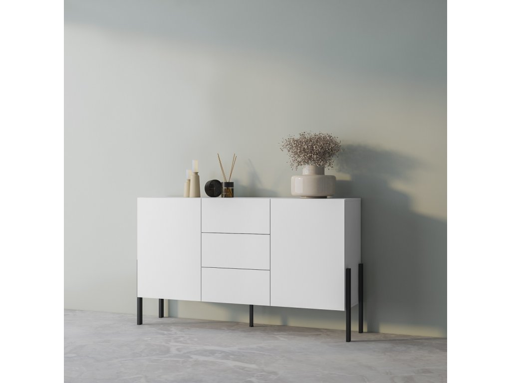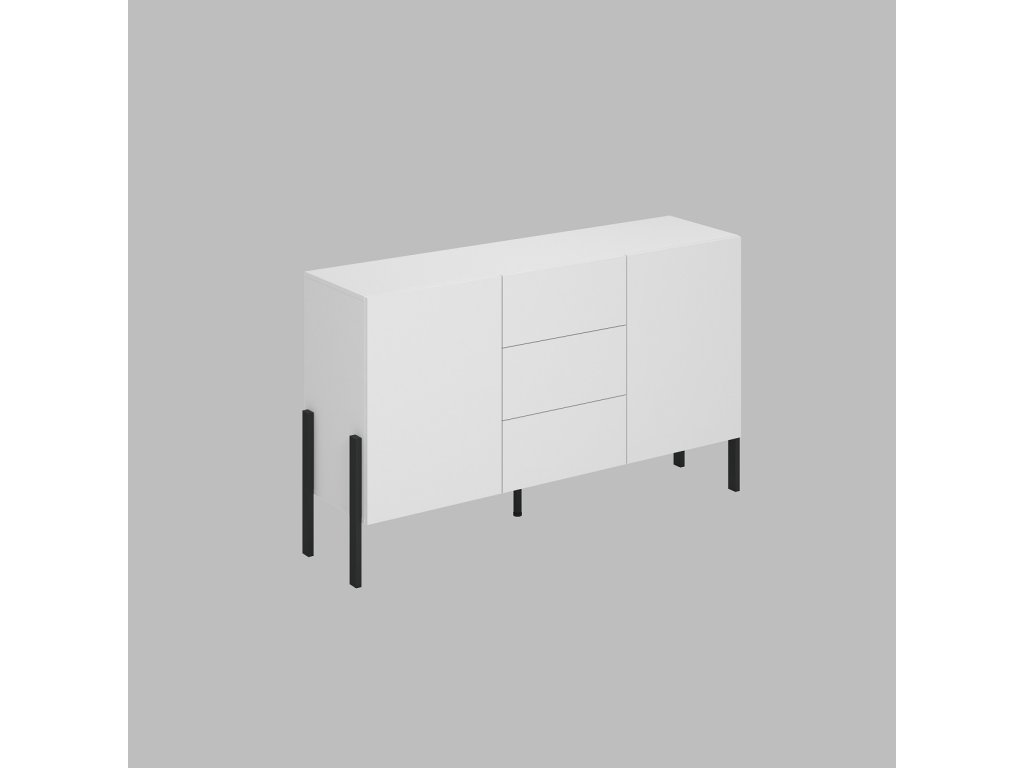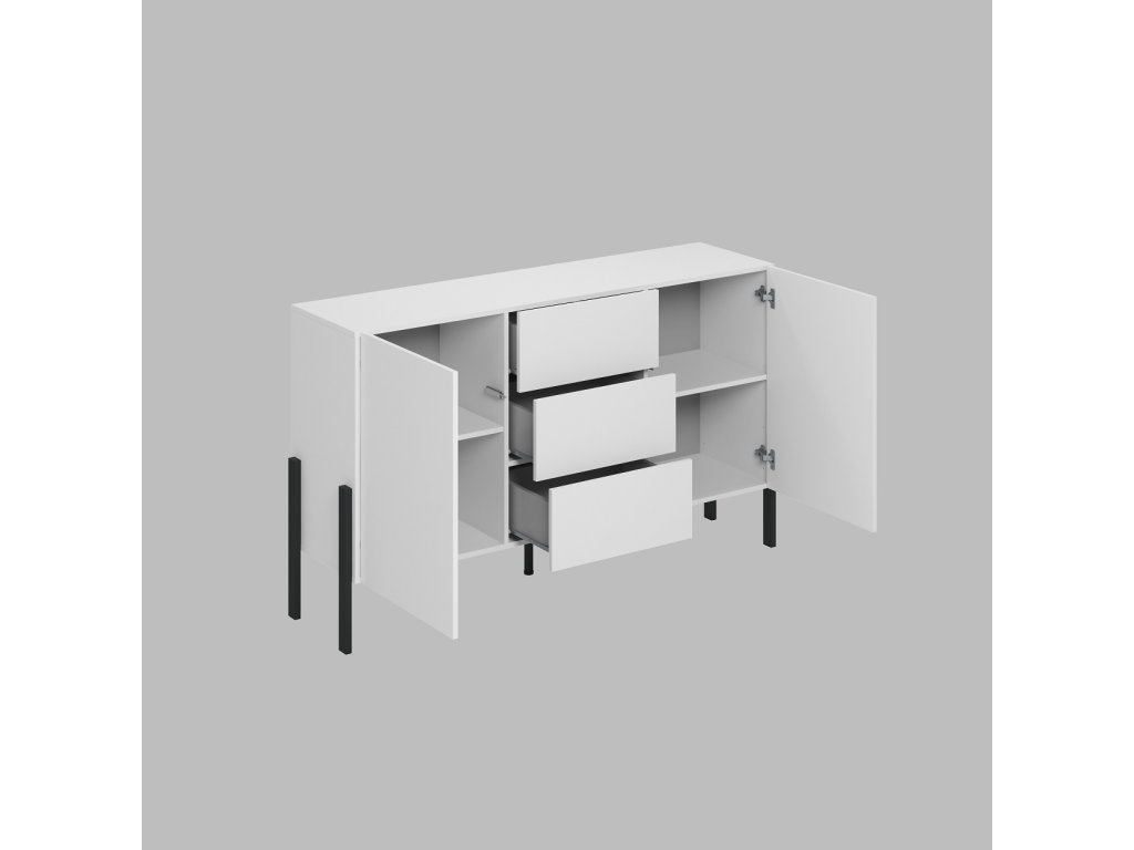 Komoda je dvoudveřová. Disponuje třemi praktickými zásuvkami.