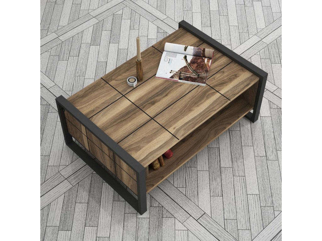 Zajímavý konferenční stolek DELUXE LOST v netradiční barevné kombinaci osloví nejednoho návštěvníka. Díky spodní otevřené polici poskytuje dostatek úložného prostoru pro odložení knih, časopisů a ostatních drobností, které chcete mít vždy po ruce. Stylové nožičky v tmavé barvě kovu spolu s výraznou kresbou dřeva a tmavými liniemi na vrchní desce dodávají stolku jedinečný charakter.