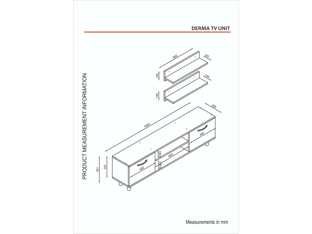 | Sestava obsahuje: | TV stolek š150Xh29,5Xv43, 2x nástěnná police š60Xh14,5Xv14,5 |