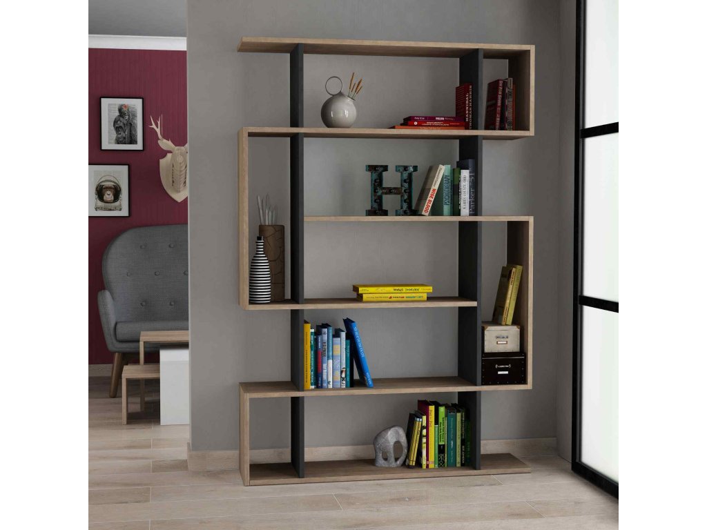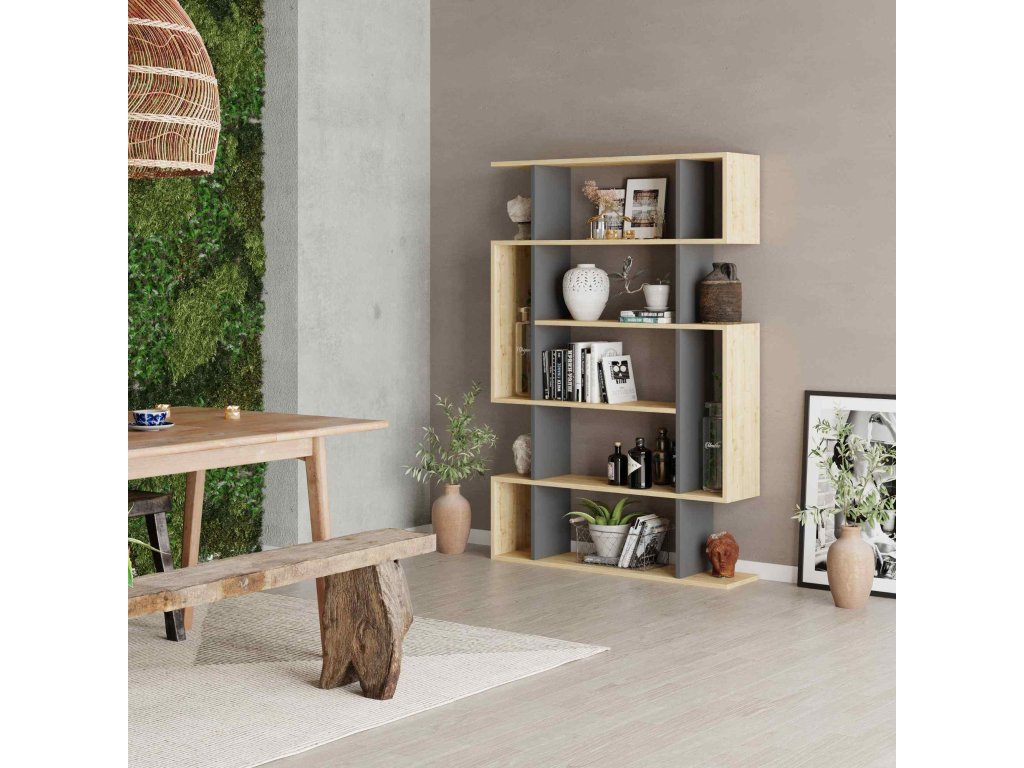 Designový Regál ZOILA: Dokonalá Kombinace Dubu a Antracitu pro Moderní Interiér