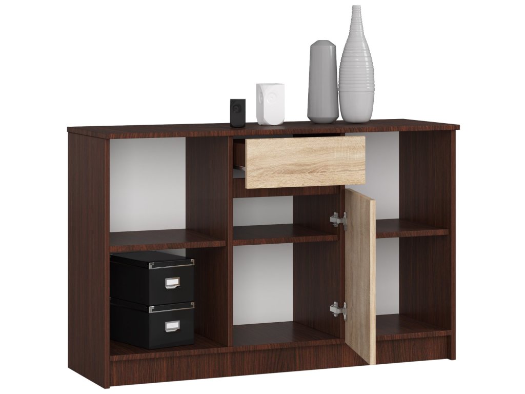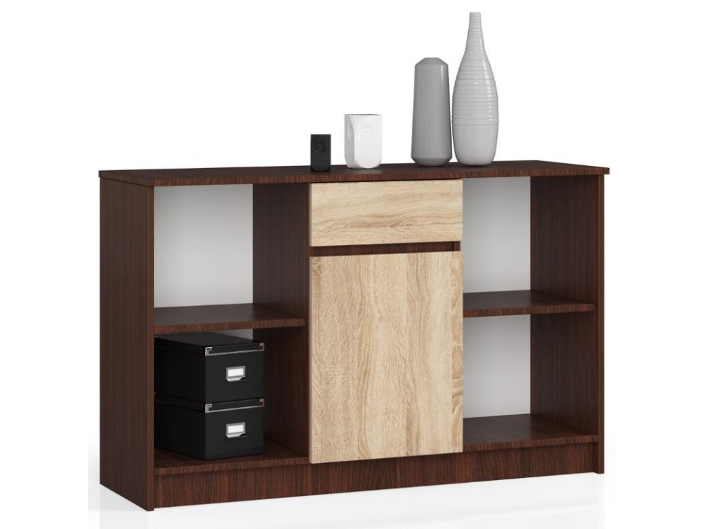 Komoda B52-120: Elegance tmavého wenge v kombinaci s teplým dubem Sonoma