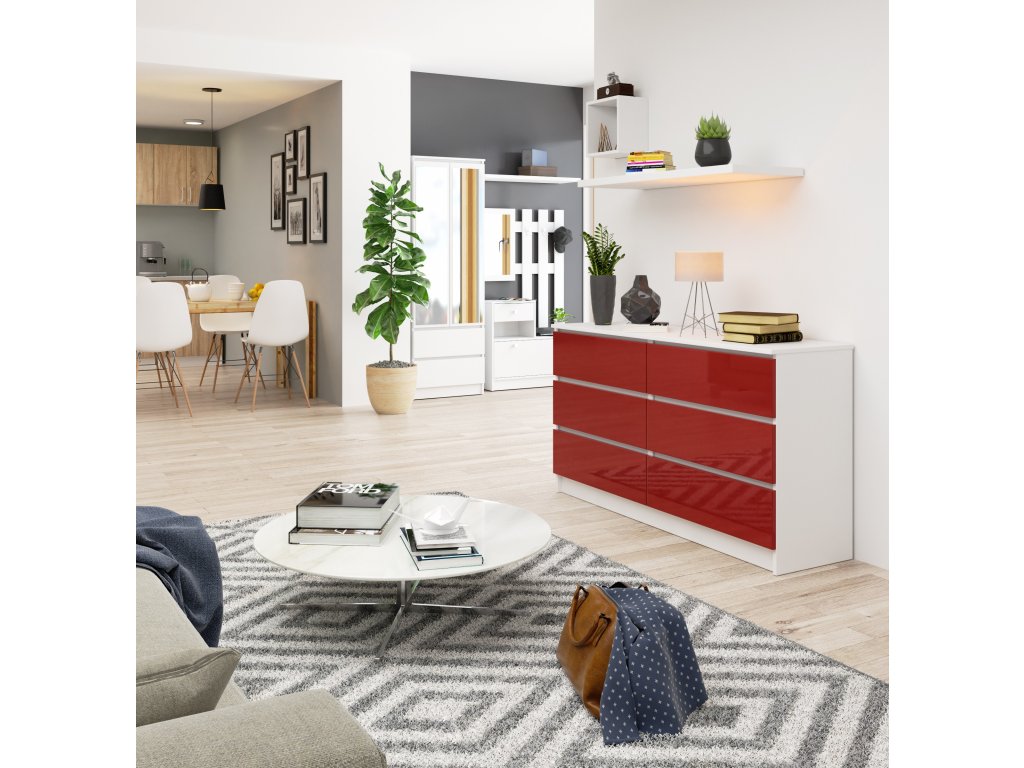 Ať už hledáte stylovou komodu do ložnice nebo obývacího pokoje, MELLOOW140 vás jistě zaujme svým jedinečným designem. Její lesklé červené detaily přinášejí do prostoru výrazný akcent, zatímco praktické zásuvky nabízí dostatek úložného prostoru.