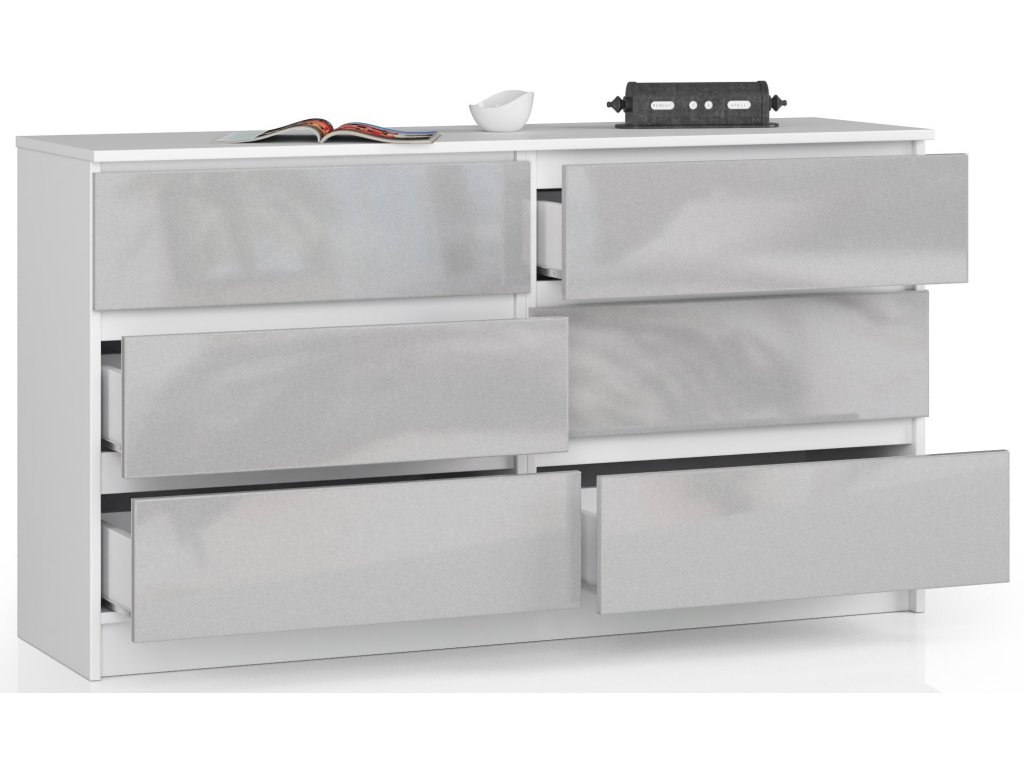 Designová komoda, MELLOOW140, bílá / metalický lesk
