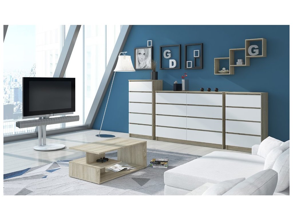 - Barva: Elegantní dub Sonoma kombinovaný s čistě bílou
