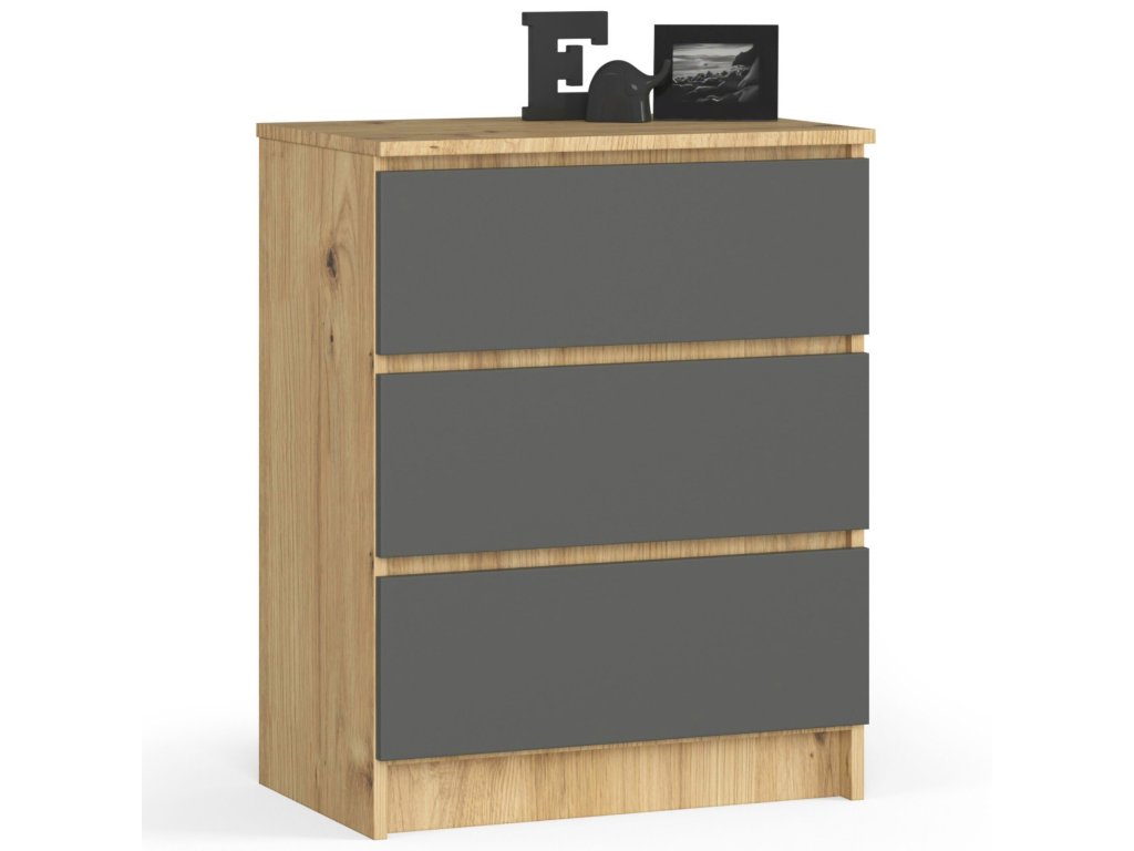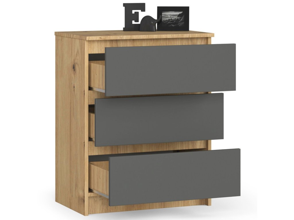 Komoda SILVIA60: Přitažlivá kombinace dubu Artisan a grafitu
