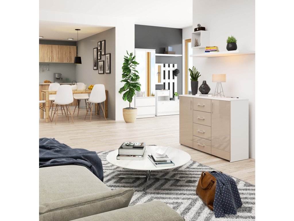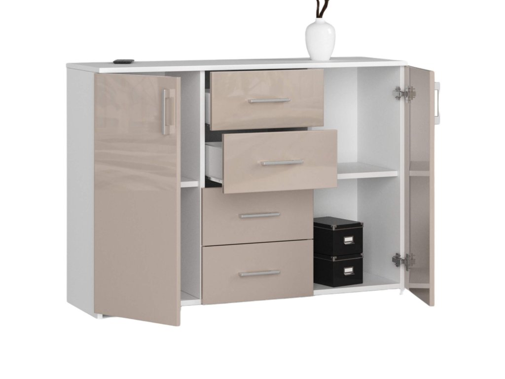 Designová komoda TRAVI110, bílá / capuccino lesk