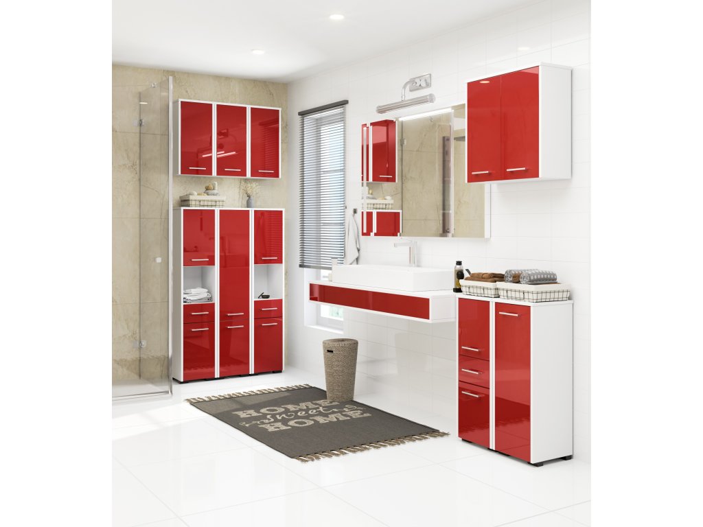 Moderní koupelnová skříňka ASTRID2 v kombinaci bílé a červeného lesku
