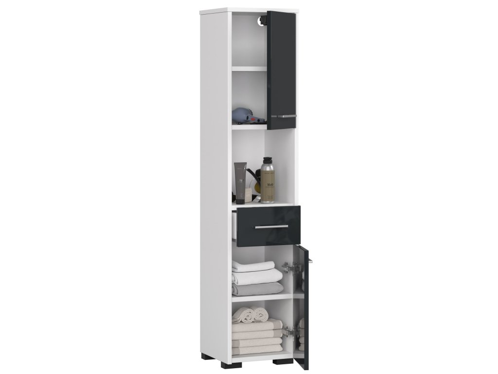 Moderní koupelnová skříňka ASTRID2 v sofistikované kombinaci bílé a grafitového lesku