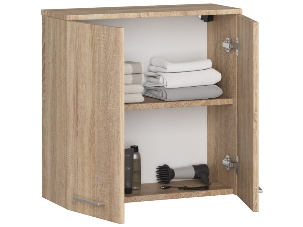 Díky skříňce ISLA60 si můžete vytvořit přehledné a estetické prostředí ve vaší koupelně. Její dub Sonoma design přidává dotek přírodní elegance, zatímco dva úložné police nabízí dostatek místa pro vaše koupelnové potřeby.