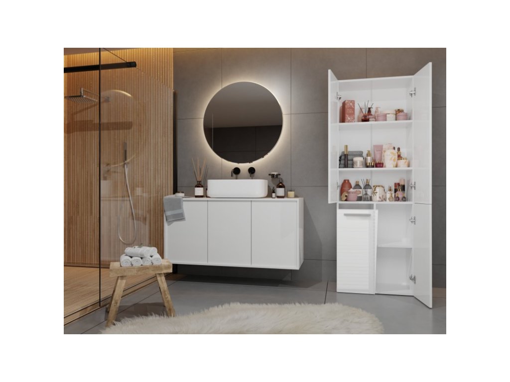 S rozměry 174 x 60 x 30 cm, OHIO 1K DD nabízí dostatek úložného prostoru s třemi dveřmi a pěti policemi, což umožňuje efektivní organizaci a uložení všech vašich koupelnových potřeb. Navíc obsahuje integrovaný koš na prádlo pro další pohodlí a udržení pořádku.