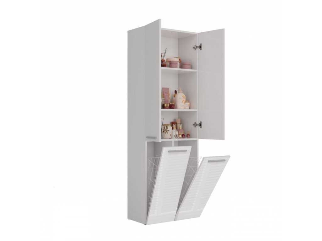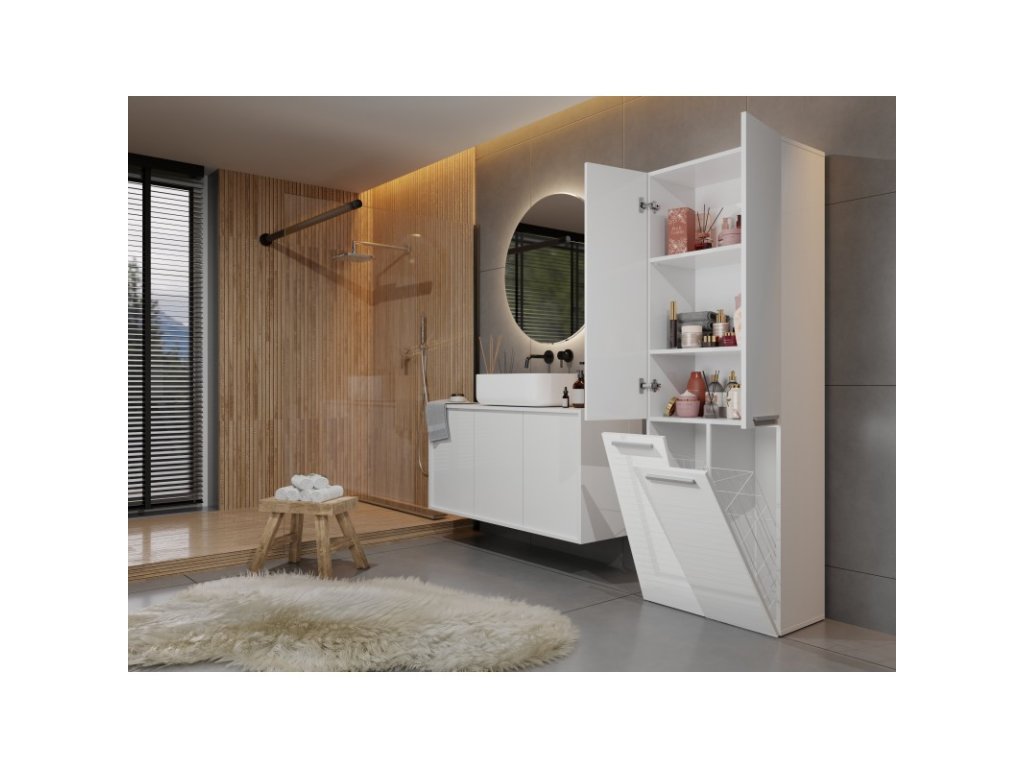 S rozměrem 174 x 60 x 30 cm a bílou lesklou povrchovou úpravou, OHIO 2K DD poskytuje dostatek úložného prostoru s dvěma dveřmi a třemi policemi. Navíc je vybavena praktickým košem na prádlo, což z ní činí funkční a zároveň stylový doplněk do vaší koupelny.