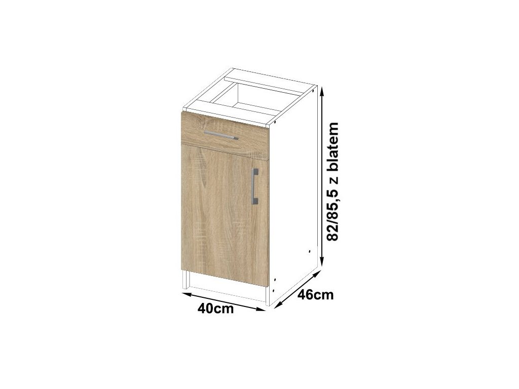 Designová kuchyňská skříňka YORK S40/1, bílá / dub Sonoma