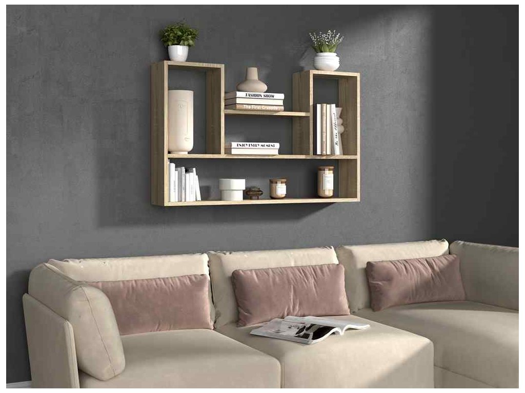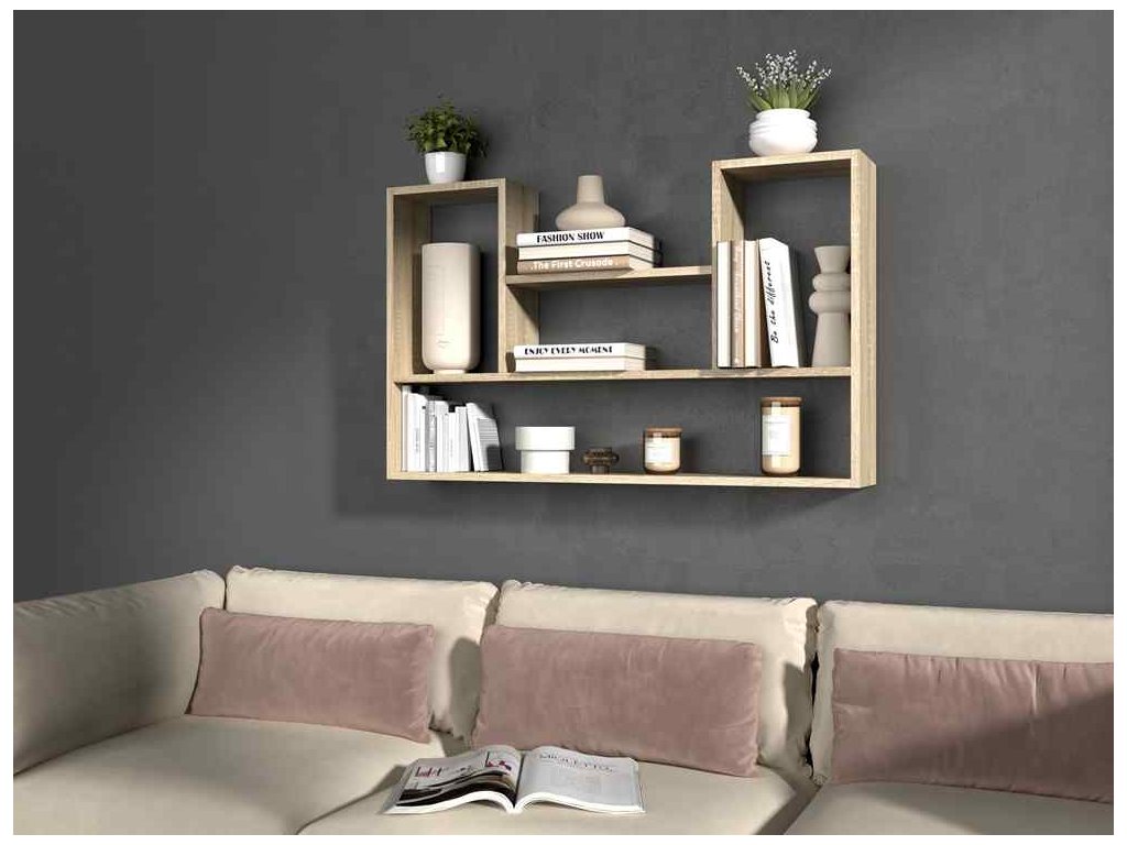 Odhalte krásu BILBAO 4P, nástěnné police, která dodá vášemu obývacímu pokoji dotek moderního designu. Tato police v teplém odstínu dubu Sonoma je ideální pro prezentaci vašich knih, dekorací nebo rodinných suvenýrů.