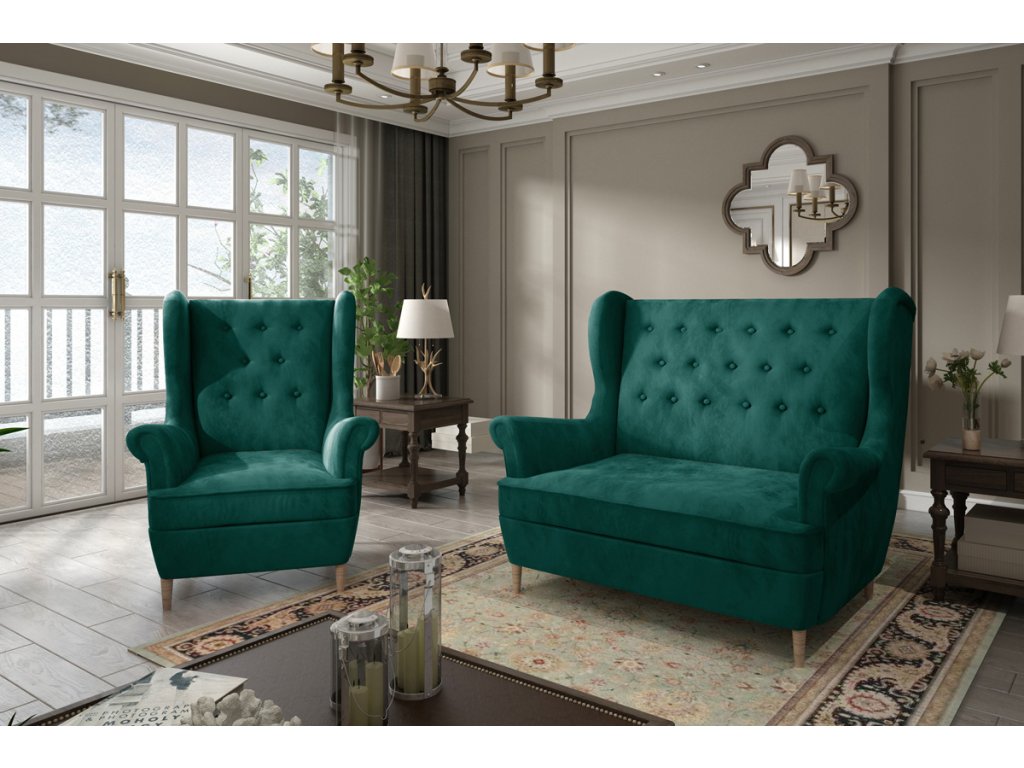 Designová pohovka ANKALIA je v tradičním provedení. Je vhodná do moderních i tradičních interiérů. Pohovka ANKALIA se stane vaším výborným společníkem při lenošení. Je vyplněna kvalitními vlnovcovými pružinami spolu s PUR pěnou. Pohovka je celá čalouněná látkou Monolith 37 v zelené barvě. Rozměry pohovky (š,v,h): 150 x 103 x 114 cm. V nabídce také máme křesla Ankalia, která jsou ve stejném designu.Doplňkové parametry