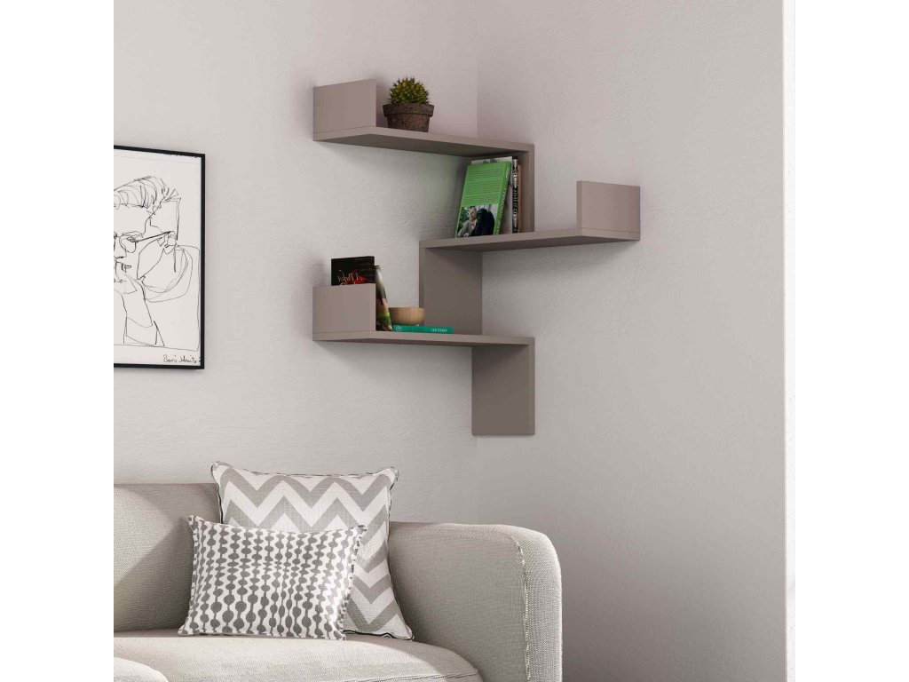 Designová rohová police SICIA, světlý moka