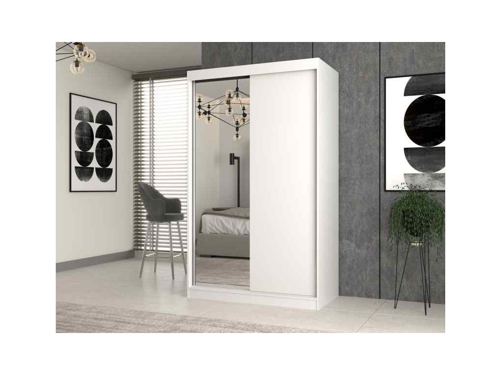 IGA 120 A/B: Moderní a Prostorná Bílá Šatní Skříň s Zrcadlem pro Vaši Ložnici