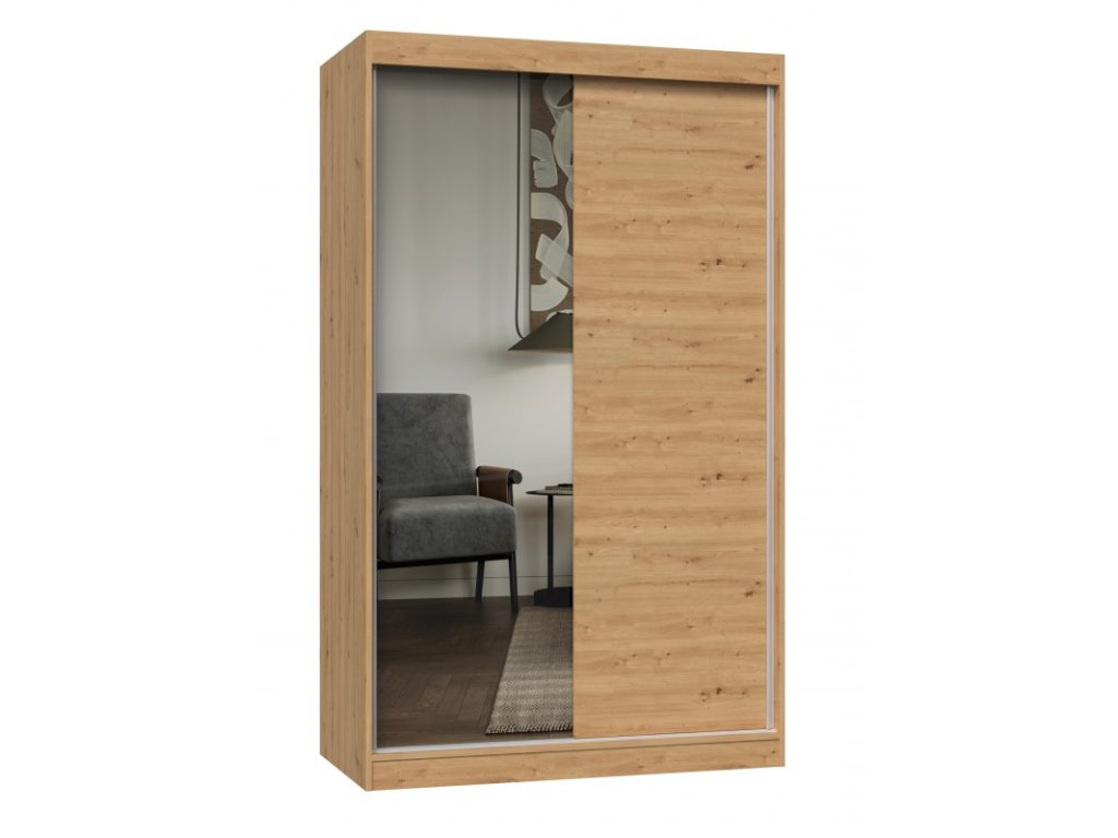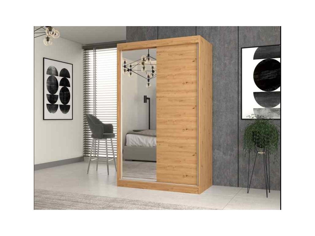 Design v odstínu dubu Artisan dodává skříni IGA 120 A/B teplý a přírodní vzhled, který se snadno kombinuje s ostatním nábytkem. Moderní a designový styl této šatní skříně je ideální pro moderně zařízené ložnice.