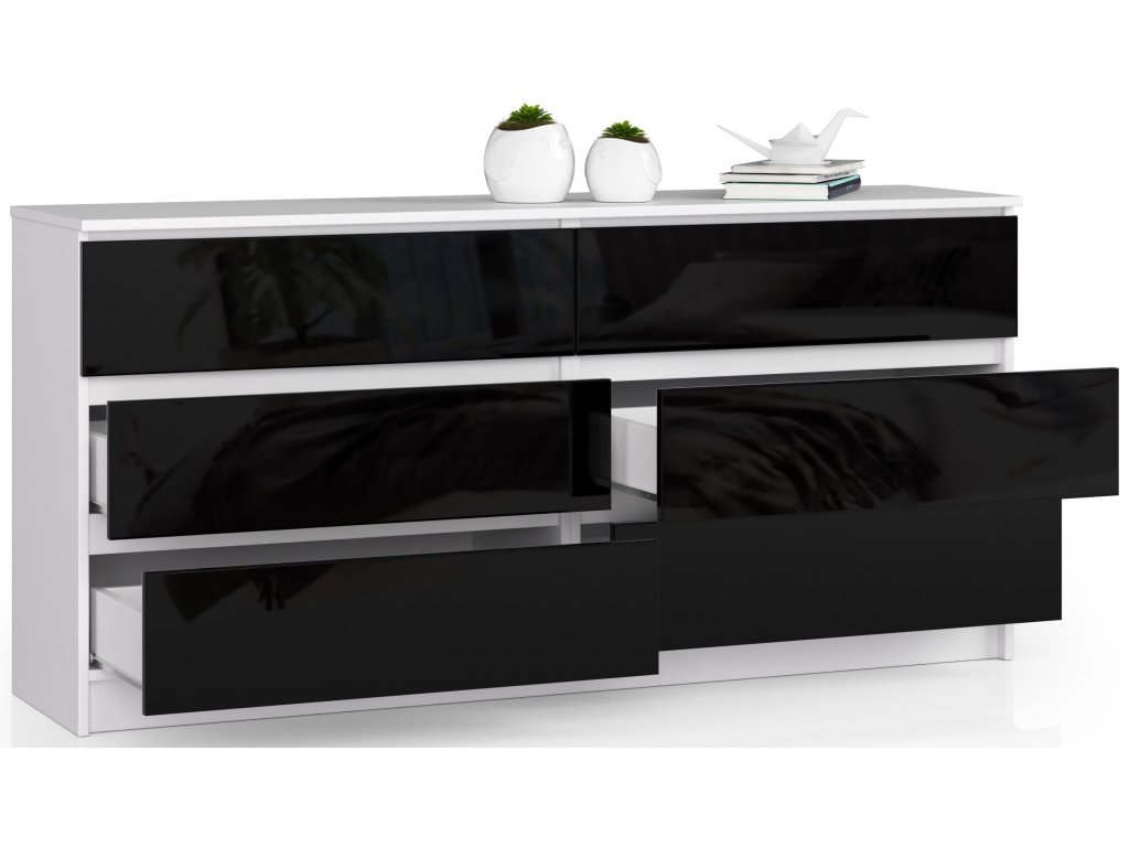 Oslnivá kombinace bílé a černého lesku představuje komodu TOM160, dokonalý kousek nábytku, který zvedne estetiku každé místnosti. Se svým moderním vzhledem a designem je tato široká komoda ideálním doplňkem jak do vaší ložnice, tak i do obývacího pokoje.