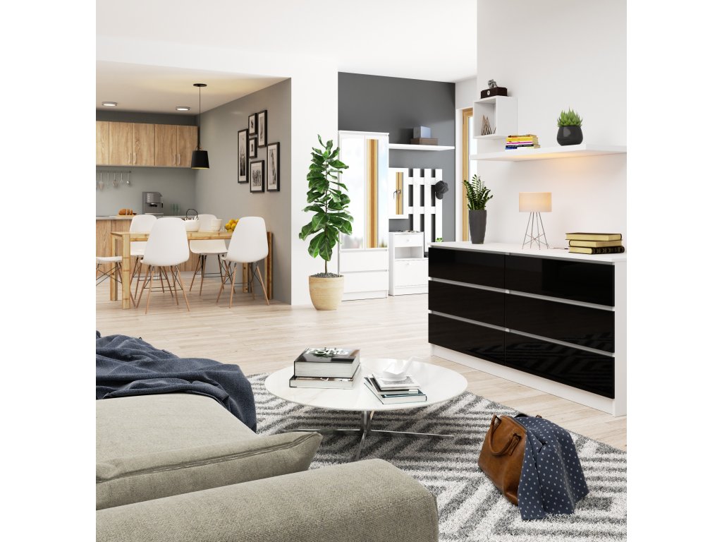 Změňte svůj interiér s komodou TOM160 a vdechněte mu nový, svěží a moderní nádech. Kombinace černobílého lesku představuje dokonalý kontrast, který okamžitě upoutá pozornost. Máte nábytek, který je nejen krásný, ale také funkční!