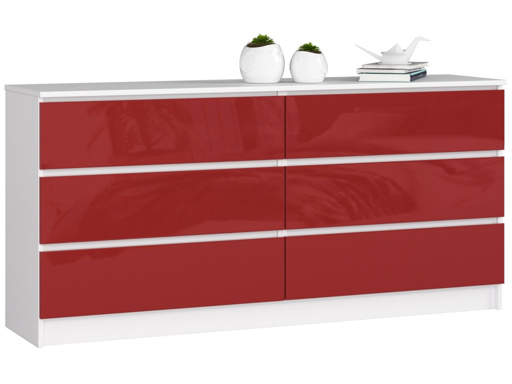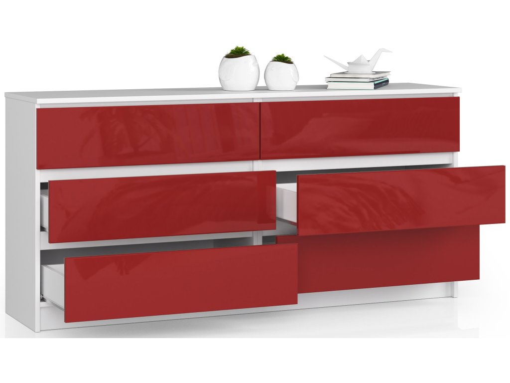 Objavte moderní estetiku s komodou TOM160. Elegantní kombinace bílé a červeného lesku přináší do vašeho interiéru svěží a odvážný vzhled, který zaujme na první pohled. Ať už hledáte ideální nábytek do ložnice nebo obývacího pokoje, TOM160 je volbou, která nesklame.