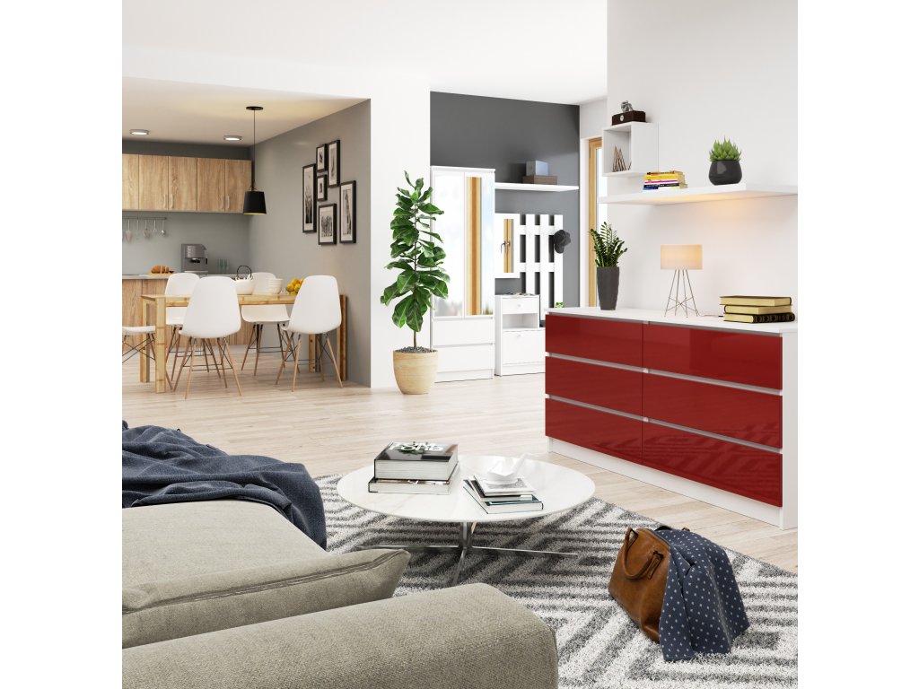 Komoda TOM160: Červená elegance v bílém kabátě