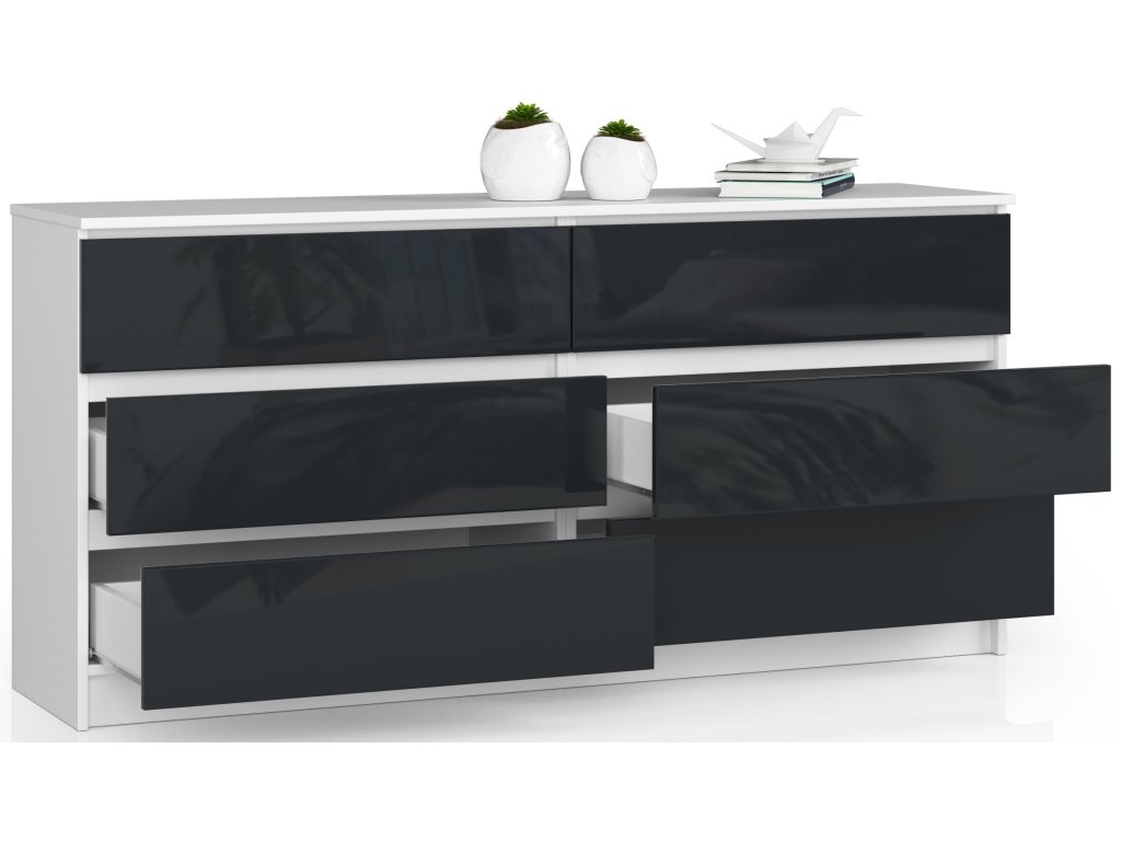 Odhalte krásu kombinace čisté bílé a hlubokého grafitu s komodou TOM160. Moderní, široká a designově dokonalá, tato komoda přináší svěží nádech do vašeho interiéru, ať už ji umístíte do ložnice nebo obývacího pokoje.