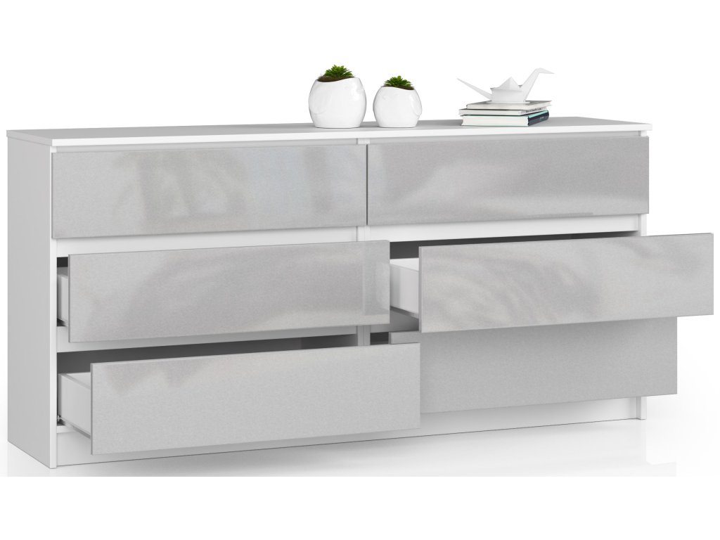 S výrobou z odolného MDF a elegantním lesklým povrchem je TOM160 nejen vizuálně poutavá, ale také praktická. 6 zásuvek poskytuje dostatek úložného prostoru a díky dalším úložným prostorům budete mít všechny své věci pohodlně na dosah ruky.