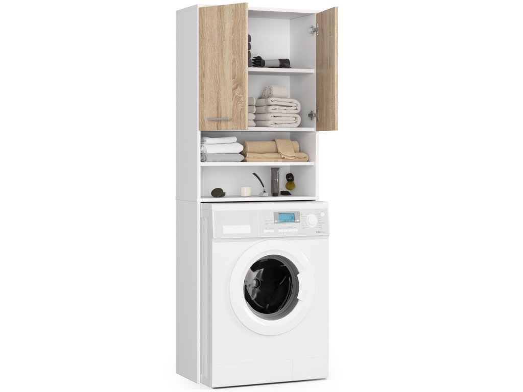 Designová skříňka nad pračku AVERY, bílá / dub Sonoma