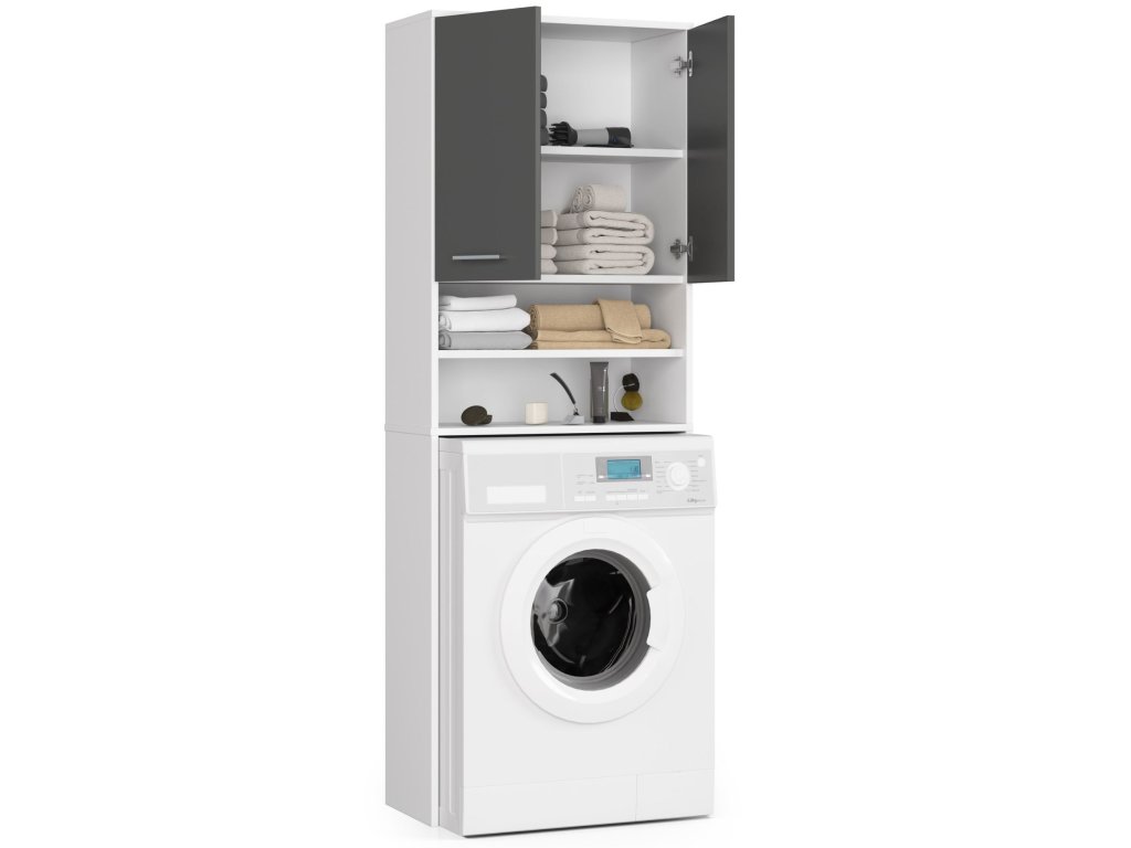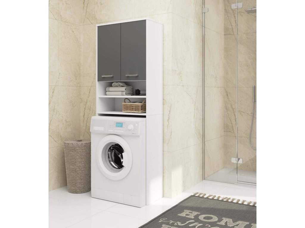 Designová skříňka nad pračku AVERY, bílá / šedá