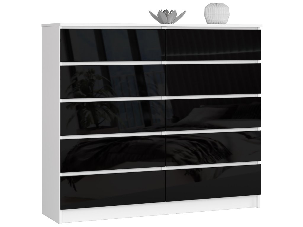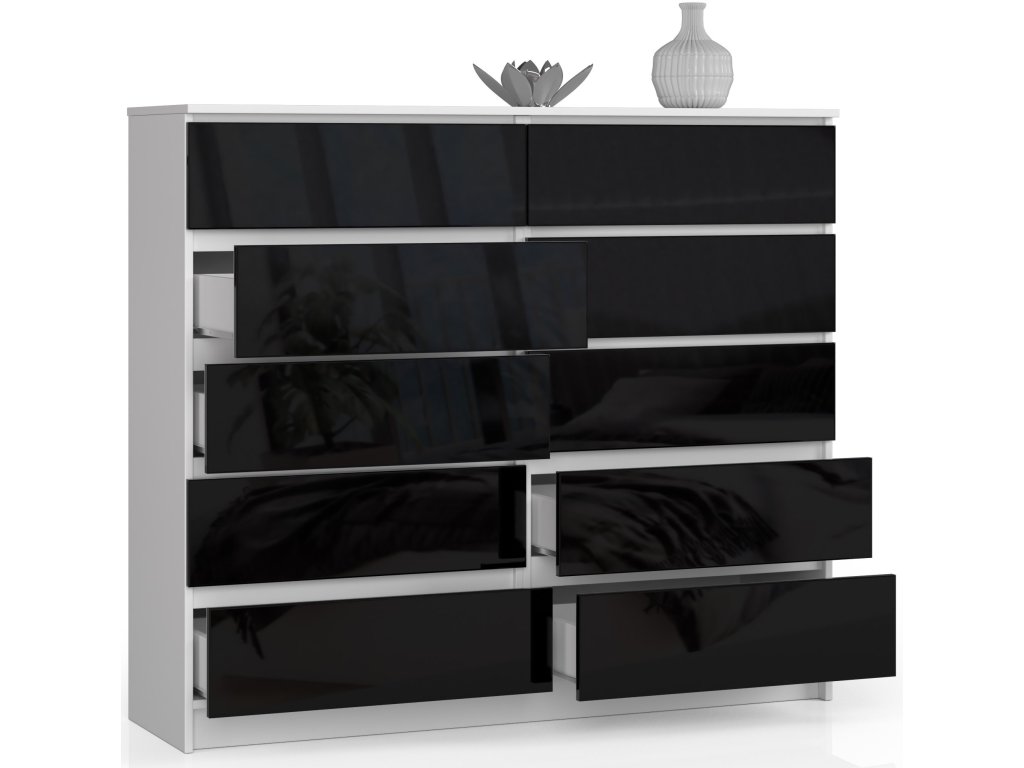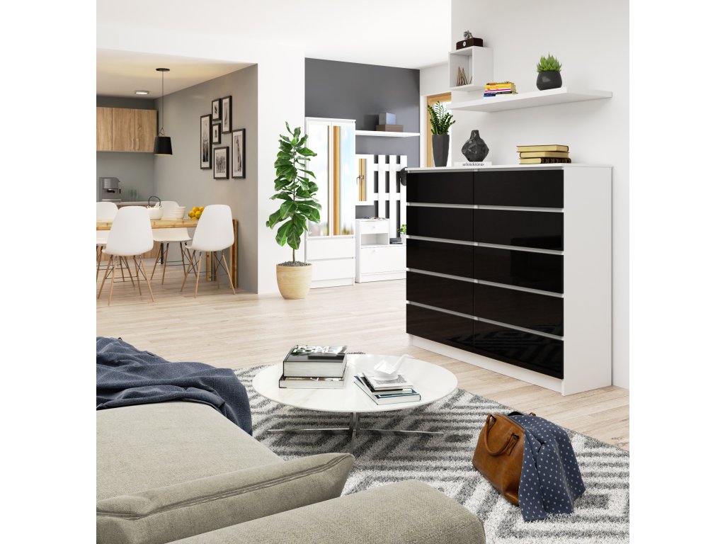 Moderní komoda AGÁTA140 v kombinaci bílé a černého lesku