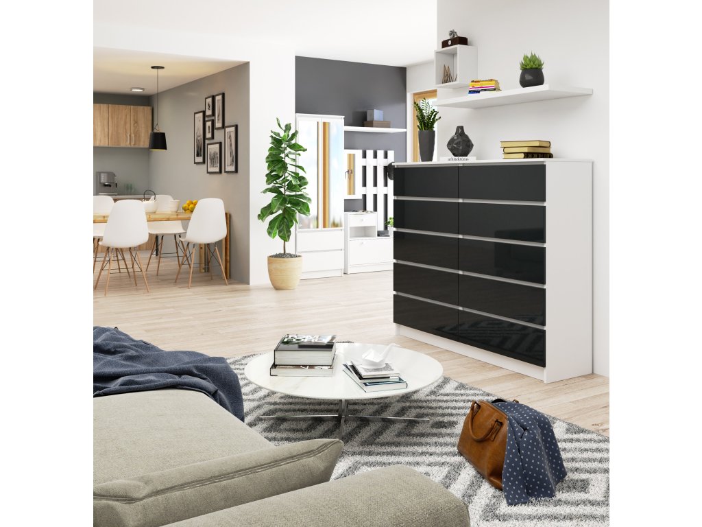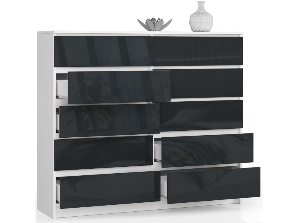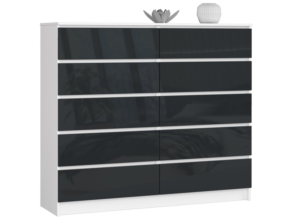 Seznamte se s komodou AGÁTA140. Tento dokonalý doplněk do vašeho interiéru kombinuje elegantní bílou barvu s grafitovým leskem, což ji činí ideálním nábytkem pro moderně zařízenou ložnici či obývací pokoj.