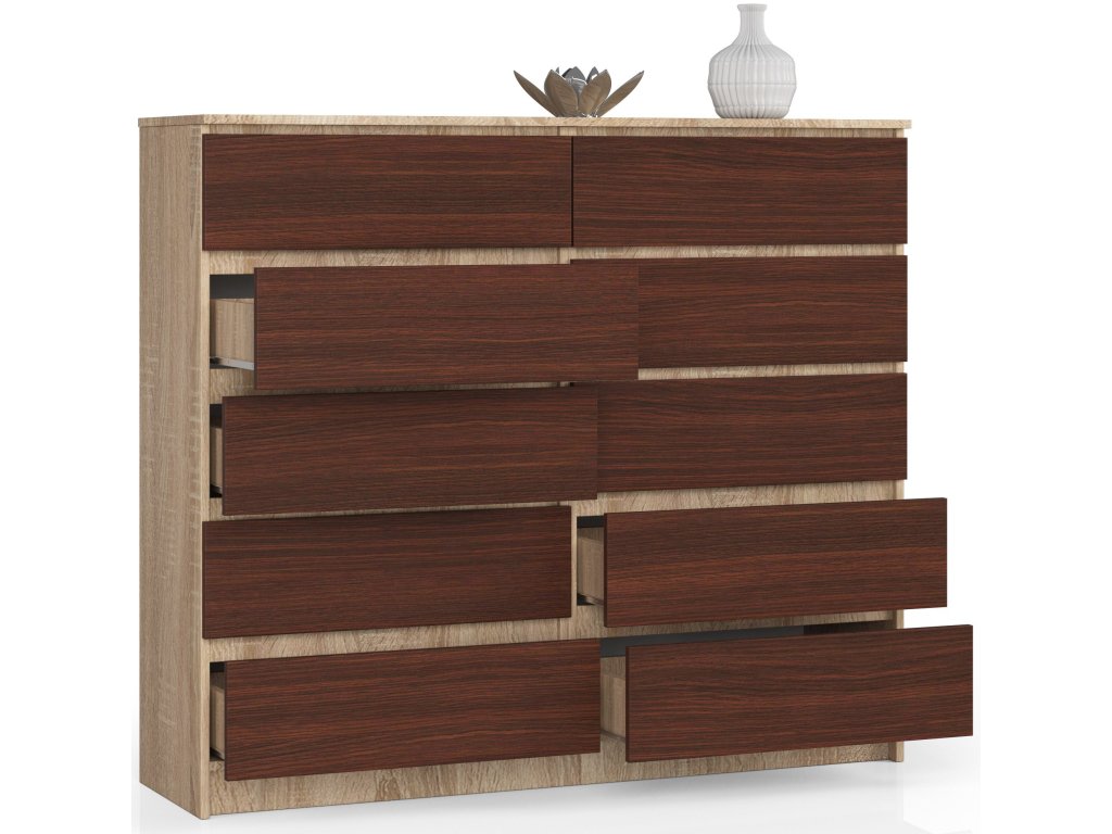 Moderní a elegantní, tak by se dala charakterizovat komoda AGÁTA140. S kombinací teplého odstínu dubu Sonoma a hluboké tmavosti wenge přinese do vašeho interiéru atmosféru luxusu a pohodlí.