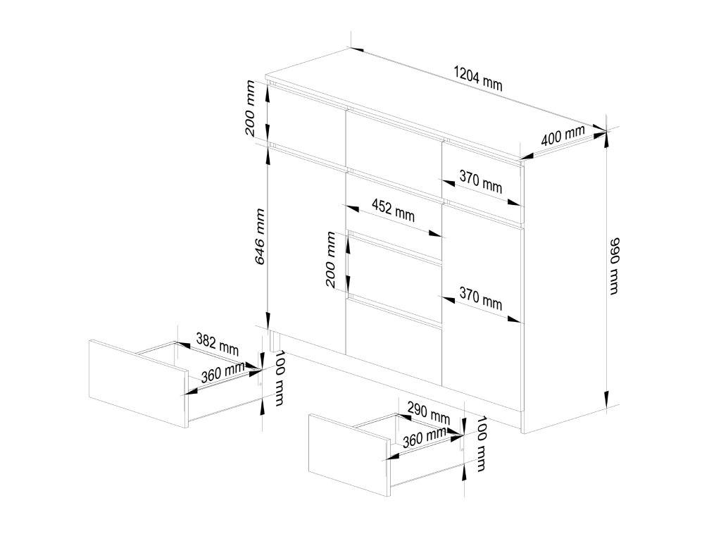 Potřebujete úložný prostor, který bude nejen funkční, ale i stylový? Setkávejte ERIKA120 - vysokou komodu, která kombinuje design a praktičnost, a stane se tak ozdobou vaší ložnice či obývacího pokoje.
