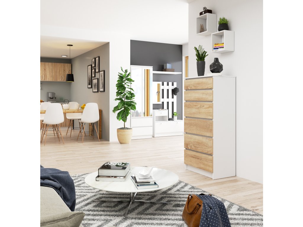 Designová, vysoká komoda HEDDI60, bílá / dub Sonoma
