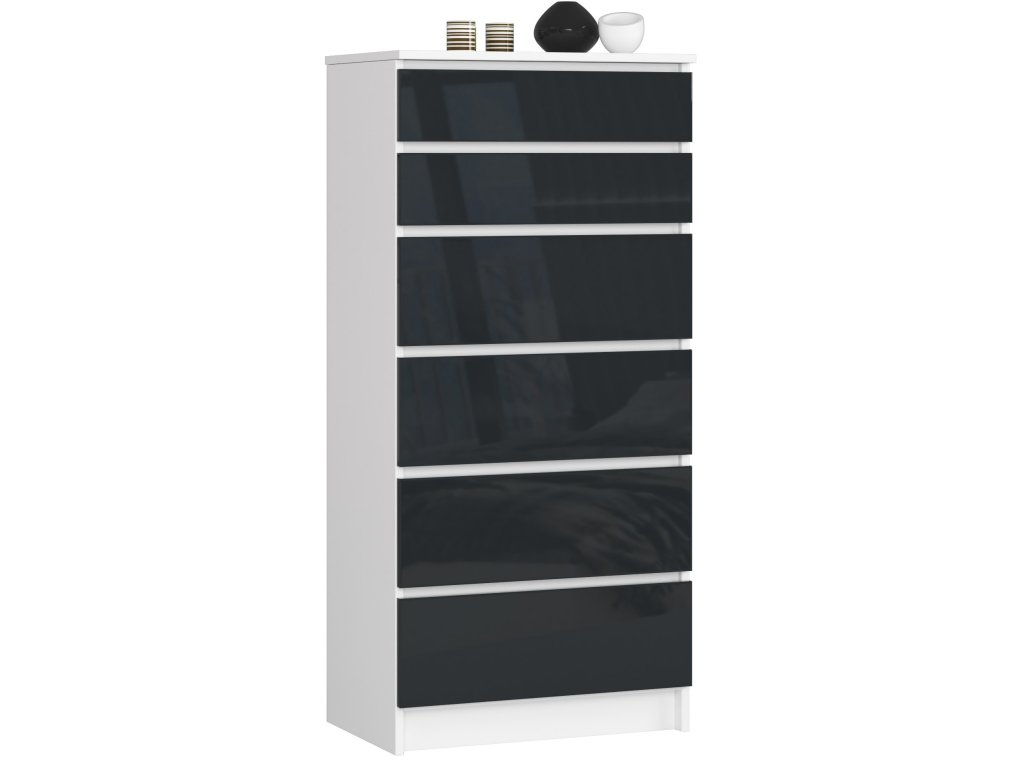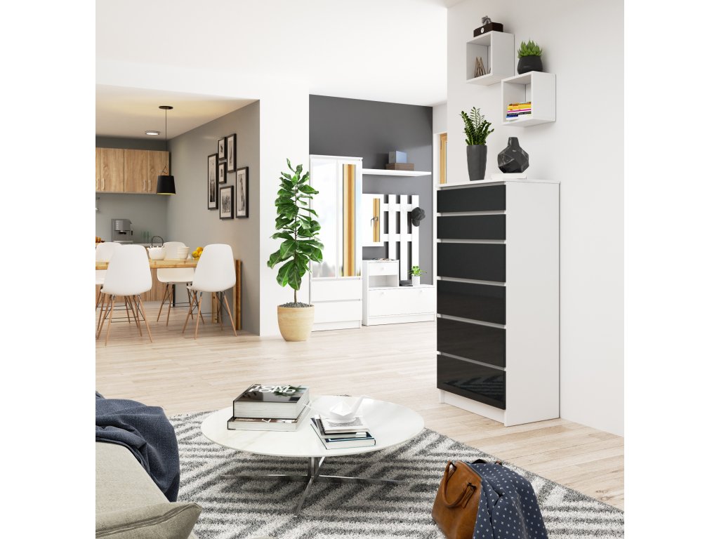 Oslovující komoda HEDDI60 představuje dokonalou symbiózu klasické bílé a hlubokého grafitového lesku. S jejím moderním designem bude skvělým doplňkem jak vaší ložnice, tak obývacího pokoje.