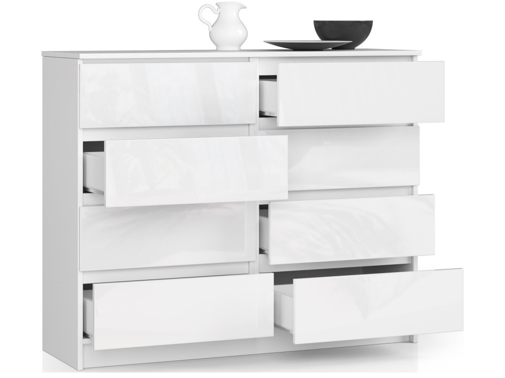 Designová vysoká komoda, JINDRA120, bílá / bílý lesk