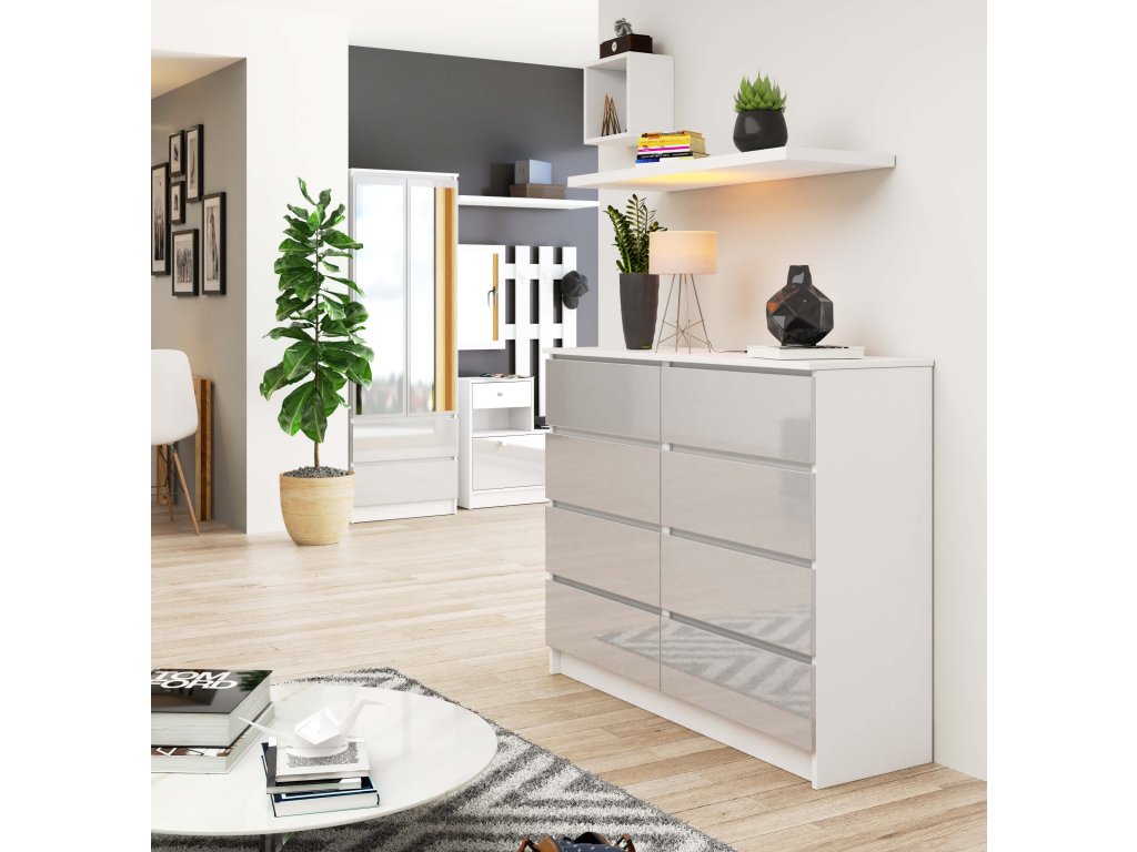 - Dekor: Lesklý povrch, který dodává komodě luxusní vzhled