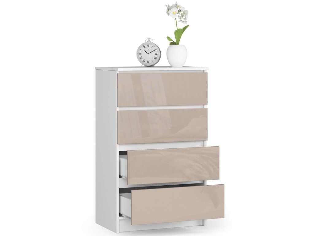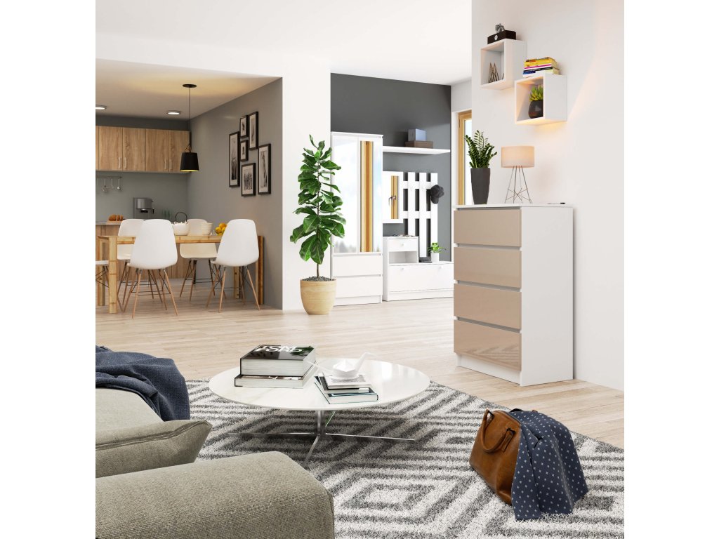 Komoda KRISS60: Dokonalost v bílé a capuccino lesku