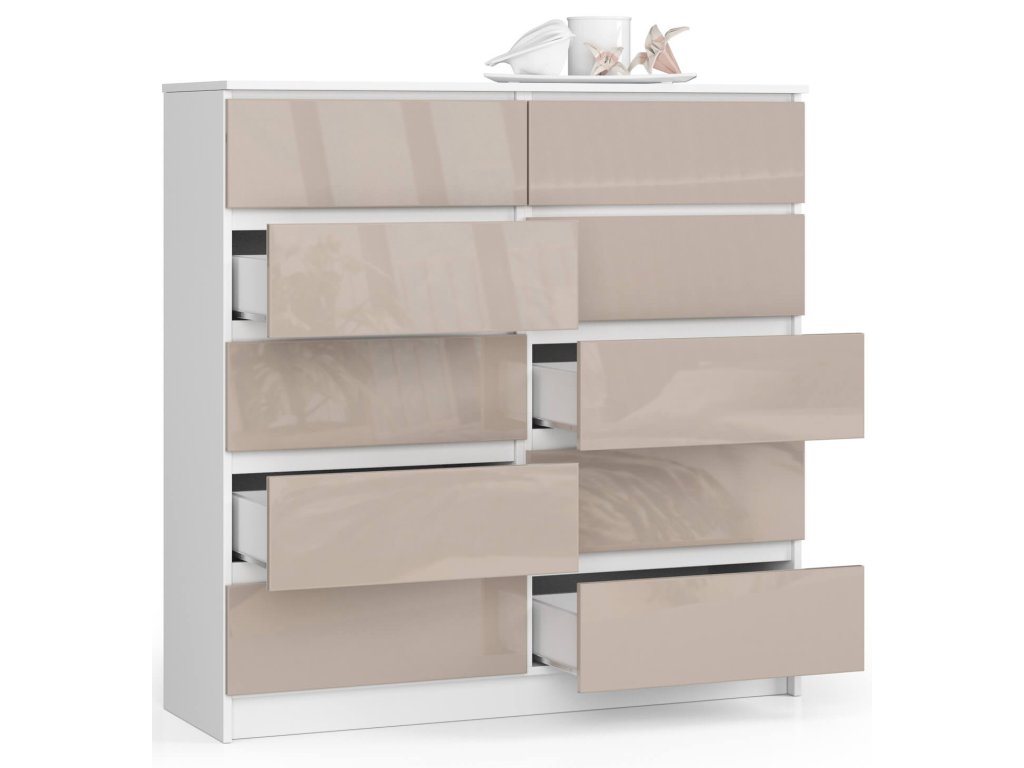 - Barva: Svěží bílá kombinovaná s luxusním capuccino leskem - esteticky působivá kombinace