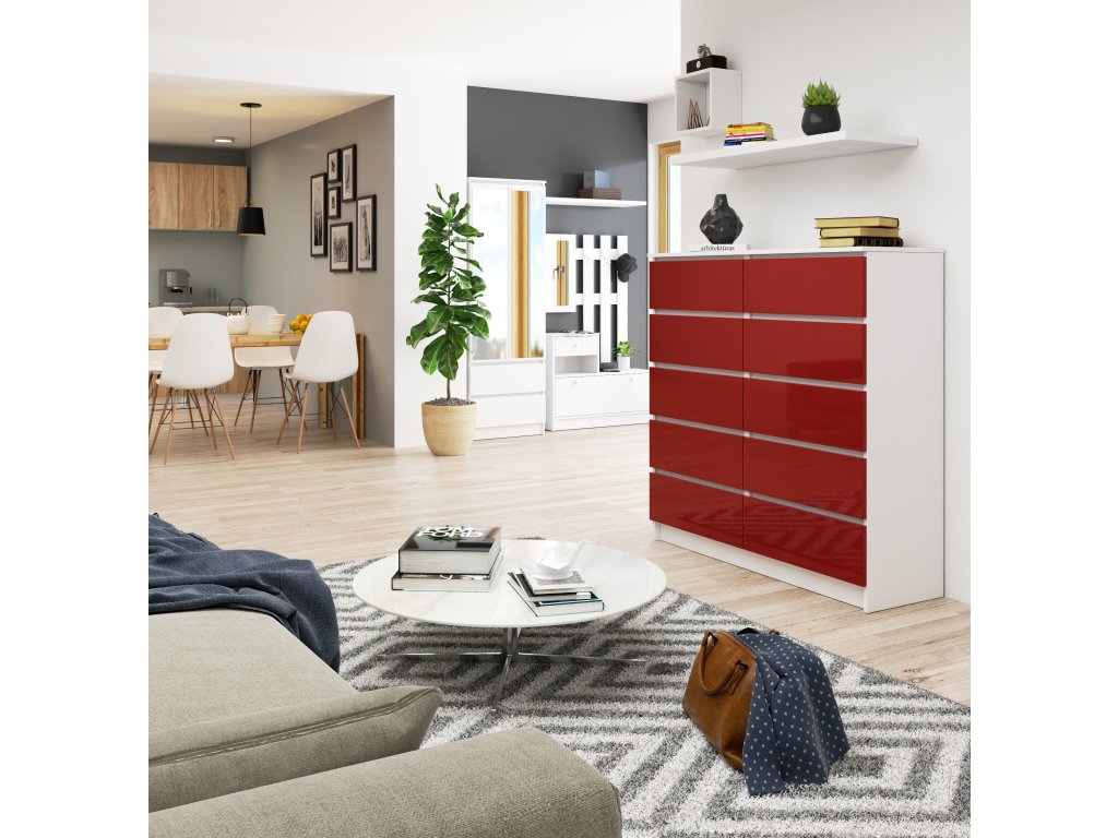Nejenže LIDUŠKA120 nabídne dostatek úložného prostoru díky svým šesti zásuvkám, ale její moderní design s lesklým dekorem ji činí skvostným doplňkem do každého interiéru. Navíc kombinace bílé s červeným leskem přináší do místnosti jemný kontrast a elegance.