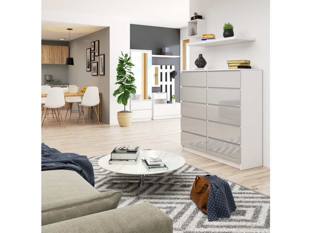 LIDUŠKA120 je více než jen komoda. Je to dokonalé spojení estetiky a praktičnosti. Metalický lesk dodává tomuto kousku nábytku jedinečný charakter, zatímco šest zásuvek a další úložné prostory zajistí, že všechny vaše věci budou mít své místo.