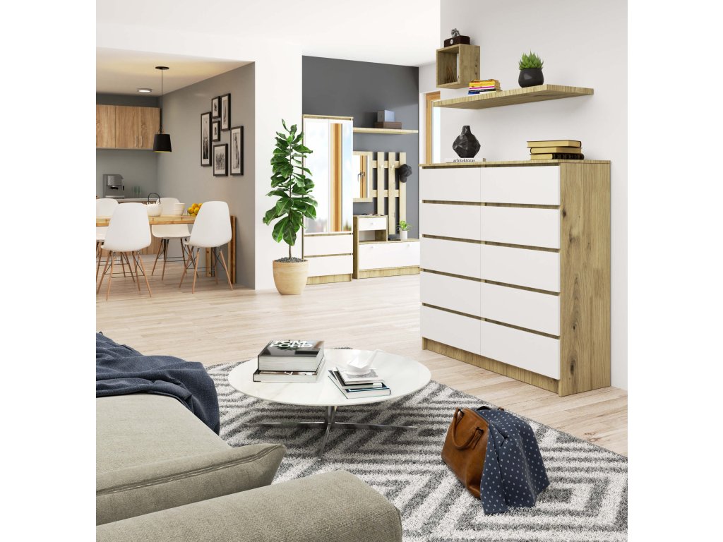 Designová vysoká komoda LIDUŠKA120, dub Artisan / bílá