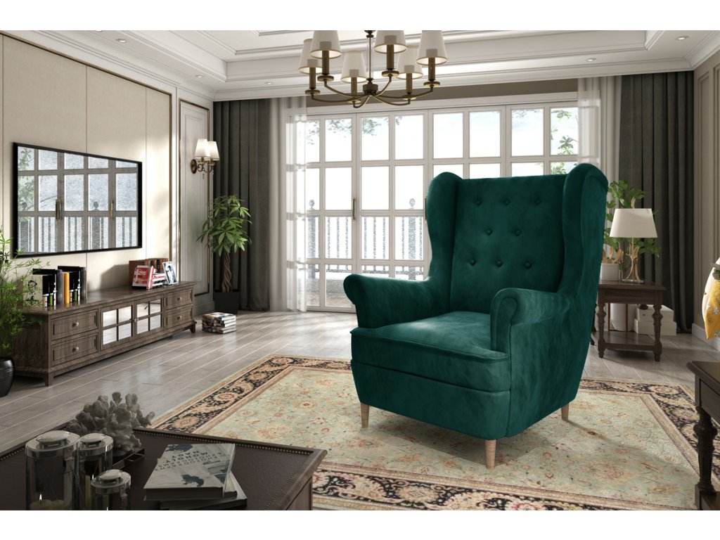 Designové křeslo ANKALIA je v tradičním provedení. Je vhodné do moderních i tradičních interiérů. Křeslo ANKALIA je ve stylu „ušák“. Stane se vaším výborným společníkem při lenošení. Křeslo je vyplněno kvalitními vlnovcovými pružinami spolu s PUR pěnou. Je celé čalouněno látkou Monolith 37 v zelené barvě. Rozměry křesla (š,v,h): 85 x 103 x 90 cm. Je vynikajícím doplňkem k pohovkám ANKALIA, které jsou ve stejném designu.Doplňkové parametry